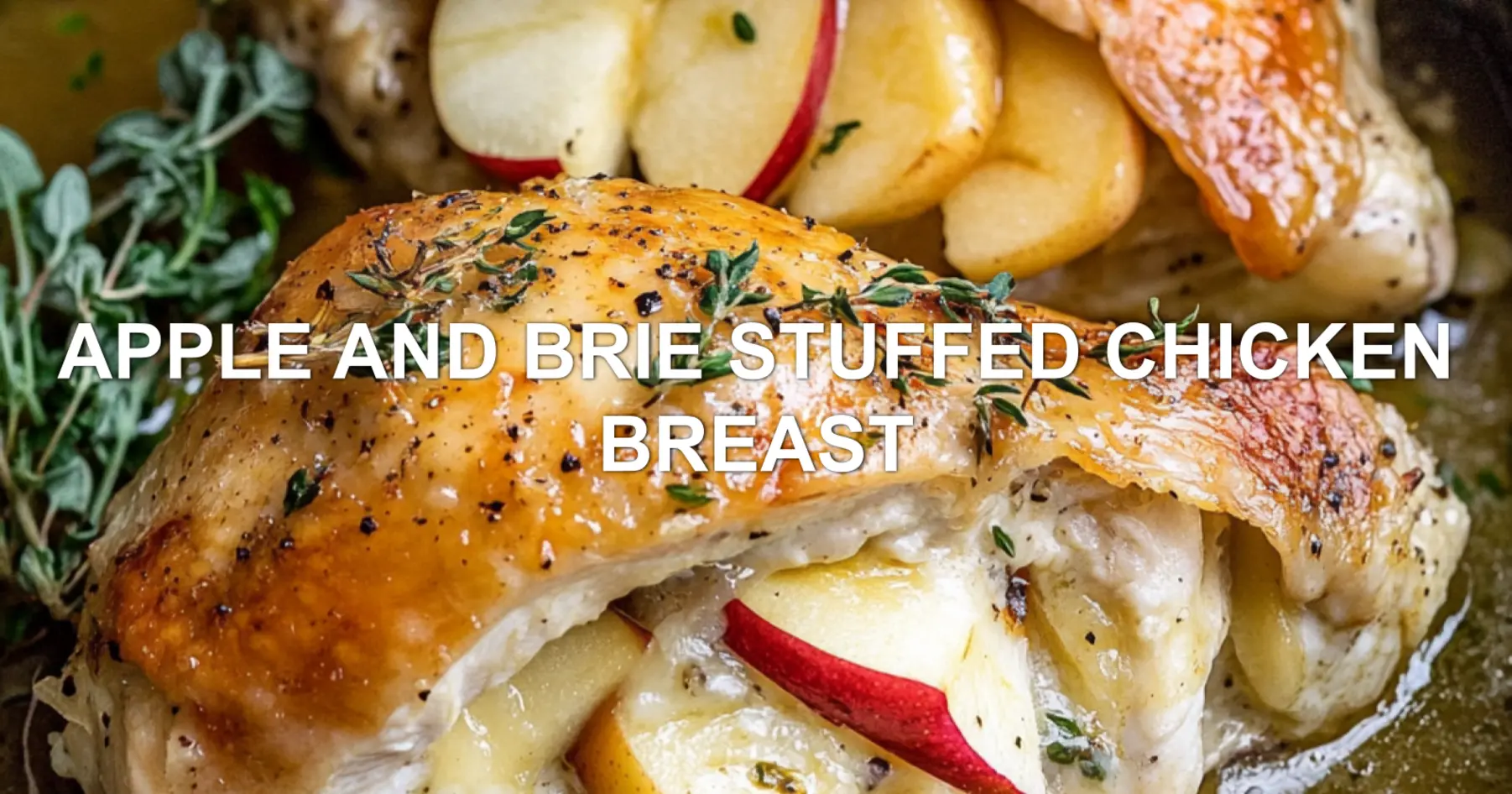 Apple and Brie Stuffed Chicken Breast centered hero view, clean and uncluttered pin
