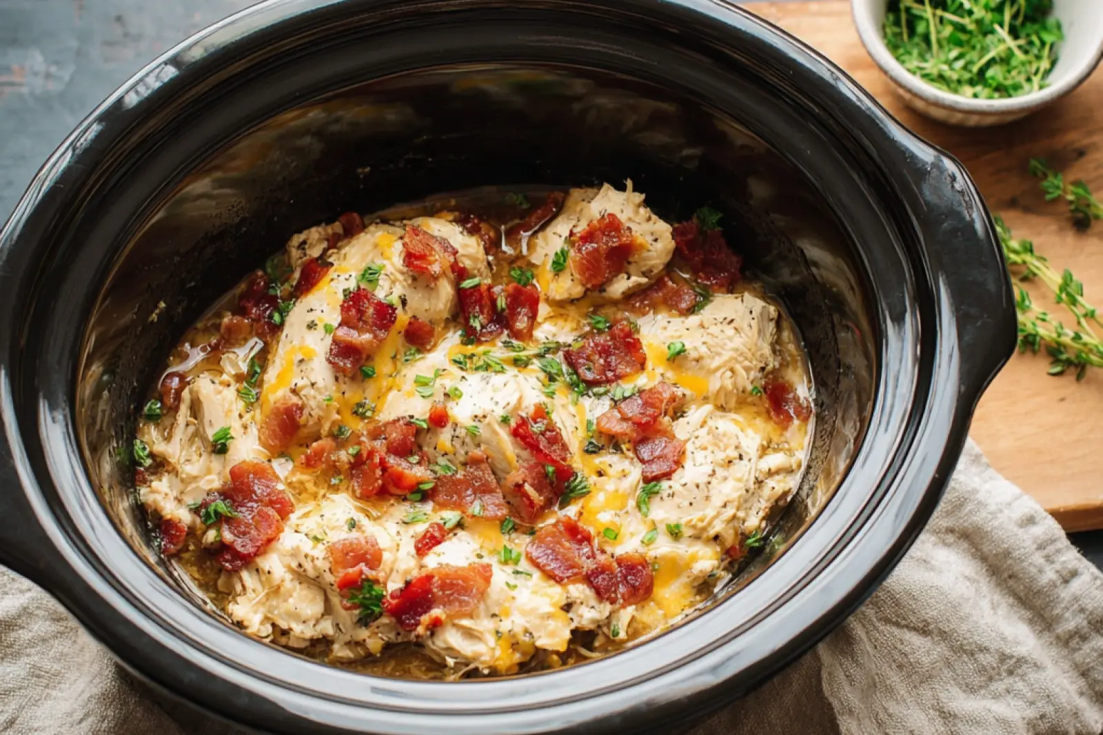 A few things worth keeping in mind before you walk away from that slow cooker: thighs over breasts if you want the most luscious shred, and don’t skip stirring the bacon in at the end that smoky finish is what makes the whole dish. Leftovers tucked into a sandwich roll the next day? Genuinely one of the better lunch moments you’ll have all week.