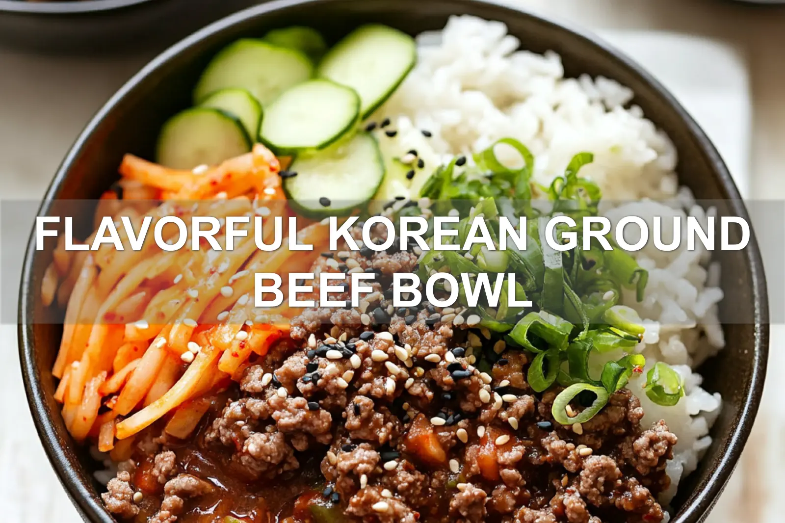 FLAVORFUL KOREAN GROUND BEEF BOWL centered hero view, clean and uncluttered