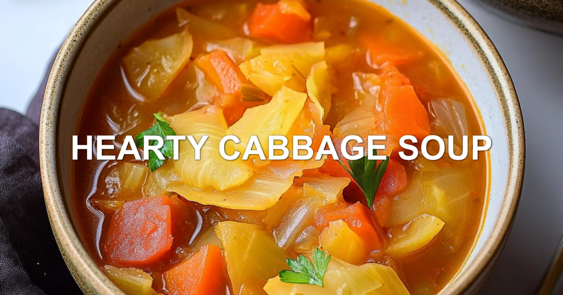 HEARTY CABBAGE SOUP centered hero view, clean and uncluttered