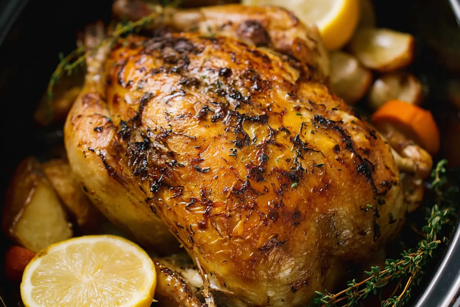 Enjoy this Lemon Garlic Roast Chicken Slow Cooker recipe that delivers a juicy, flavorful whole chicken with minimal effort. Perfect for an easy dinner, weeknight dinner, or family dinner, this garlic lemon chicken recipe combines the convenience of a slow cooker whole chicken with bright citrus and savory herbs for a comforting meal your loved ones will adore.